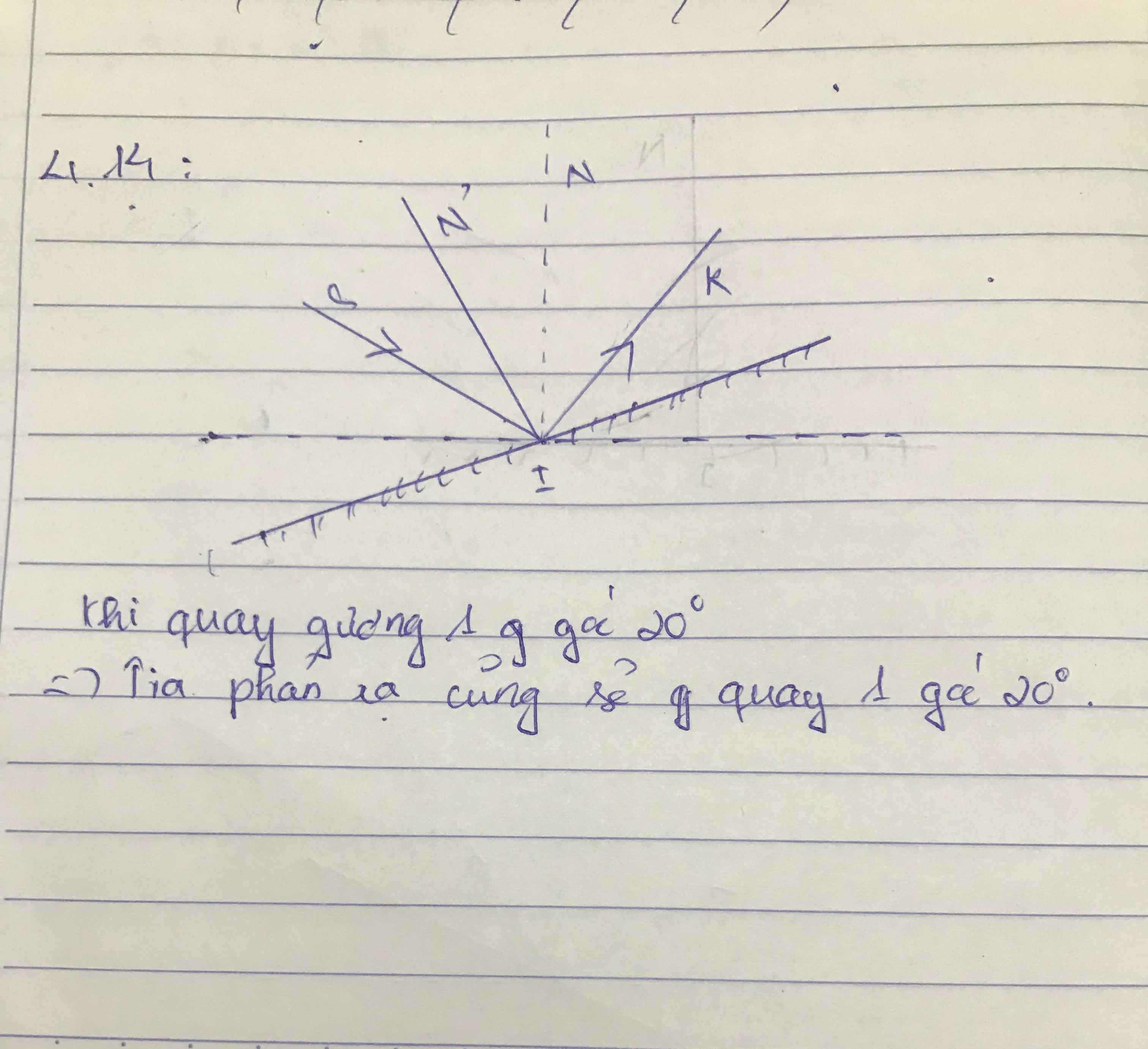 **Đáp án Bài 4:** Tia phản xạ quay góc 20°.