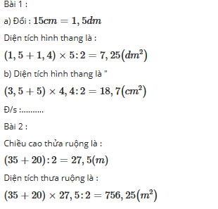 a. Độ dài hai đáy lần lượt là 15cm và 1,4dm; chiều cao là 5dm