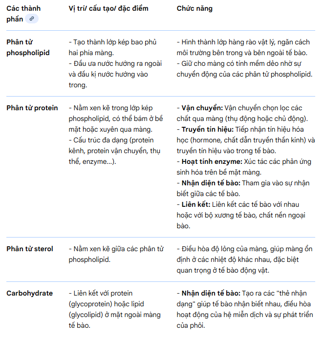 – Duy trì tính linh động (fluidity) của màng, giúp màng dễ biến dạng, phân đôi, truyền tín hiệu