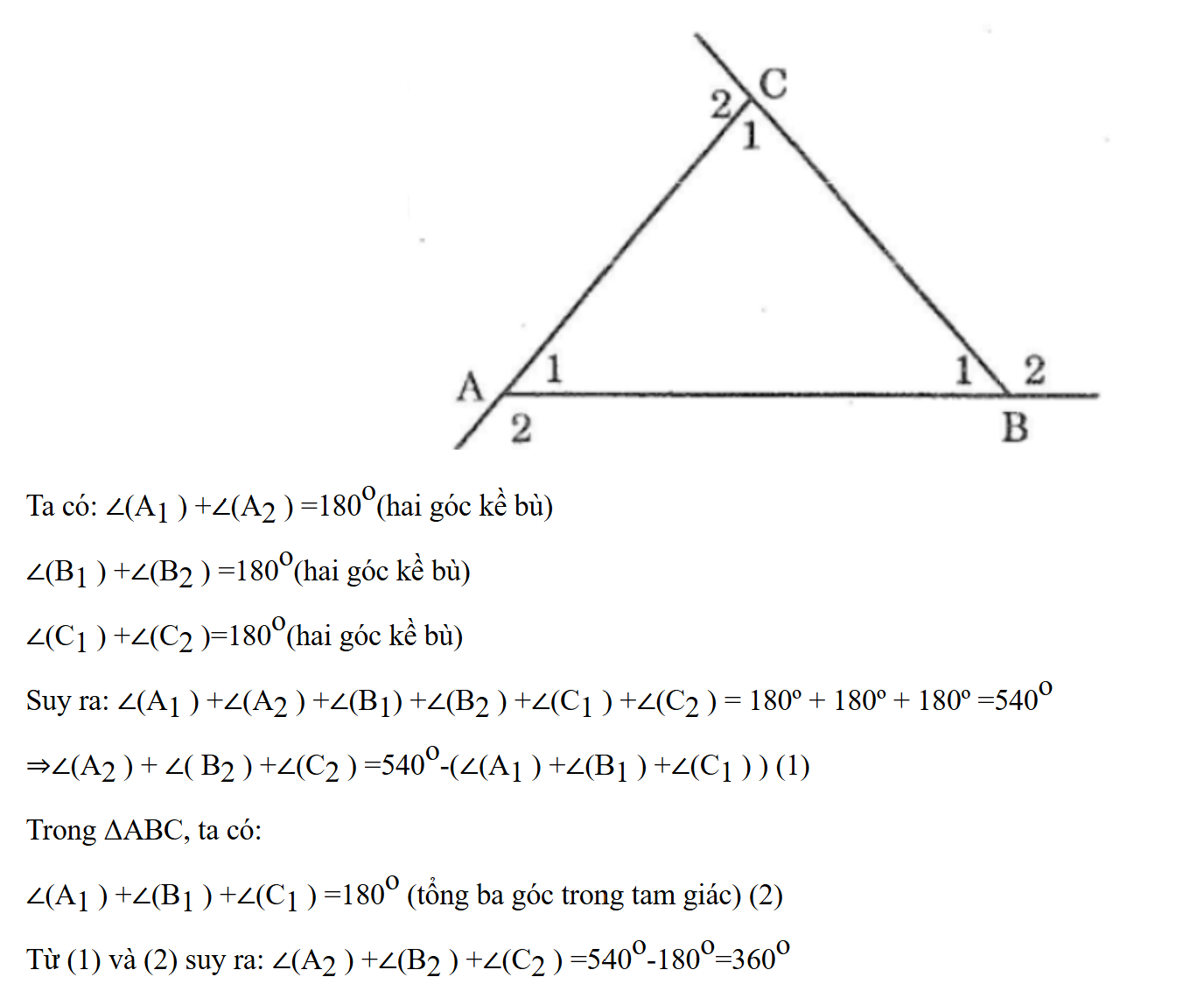 Vậy, tổng các góc ngoài của tam giác bằng \(360^\circ\).