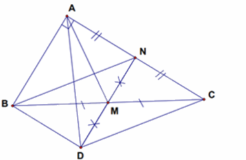 - Trên tia đối của tia MN, lấy điểm D sao cho \(MD = MN\).