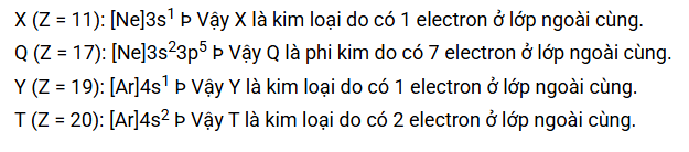 ### 1) b) Xác định tính chất hóa học (PK hay KH) của các nguyên tố trên: