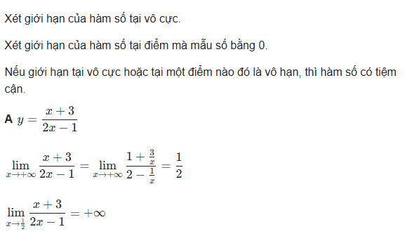 - Đường tiệm cận đứng xảy ra khi mẫu số bằng 0 và tử số khác 0.