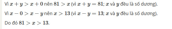 vì tổng của số lớn và số bé là 81 ⇒ x + y = 81