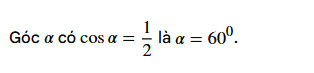 Để giải bài toán này, ta cần tìm góc $\alpha$ sao cho $\cos\alpha = \frac{1}{2}$.