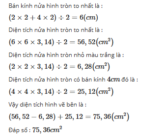 Vậy, diện tích của hình bên là \(12\pi \, \text{cm}^2\).