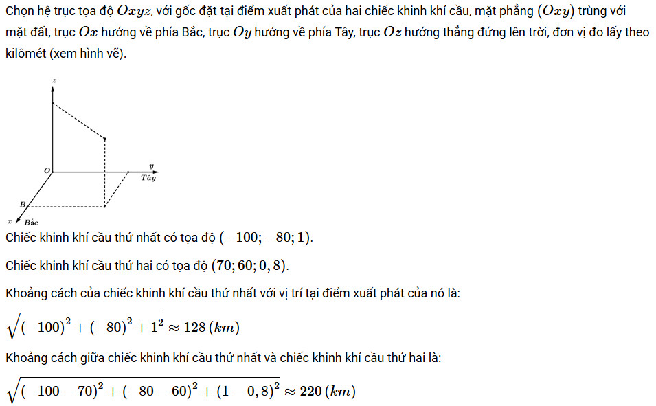 Để giải bài toán này, ta cần xác định tọa độ của hai chiếc khinh khí cầu trong hệ trục tọa độ Oxyz đã cho, sau đó tính bình phương khoảng cách giữa hai điểm này.