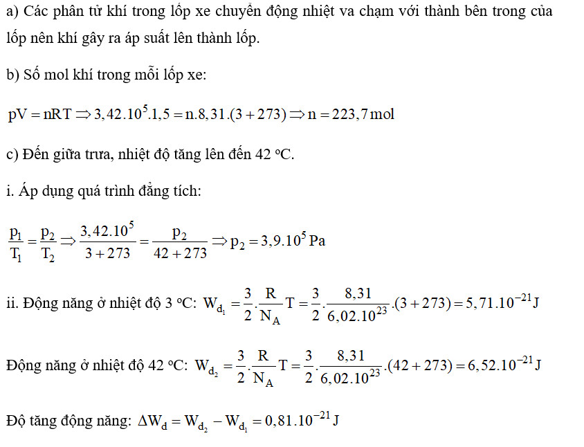 d) **Số phân tử khí trong mỗi lốp xe là \(1,35 \times 10^{26}\)**.