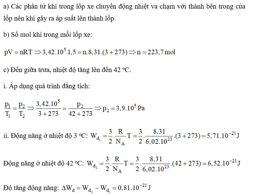 Giả sử thể tích không thay đổi, theo định luật khí lý tưởng, áp suất tỉ lệ thuận với nhiệt độ nếu số mol khí không đổi:
