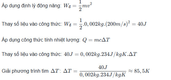 **Câu 2:** Khí nhận nhiệt lượng Q=20J, nội năng tăng ΔU=5J. Tính công sinh ra A?