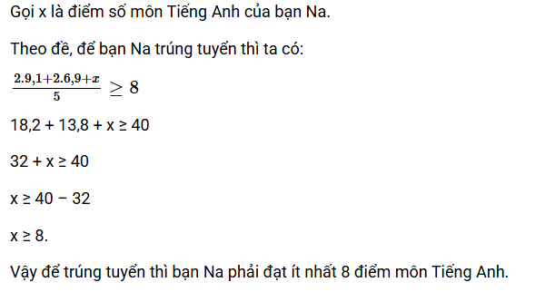 Vậy số điểm môn Tiếng Anh tối thiểu mà bạn Nam phải đạt để trúng tuyển là 24.