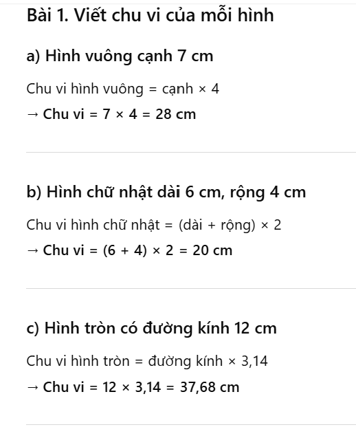 - Chu vi = 2 x 3.14 x 6 ≈ 37.68 cm