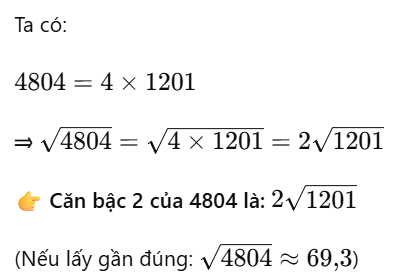 Vậy, căn bậc hai của 4804 là khoảng 68.5 hoặc 68.6.