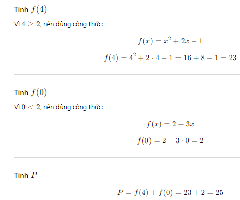 $P=f\left(4\right)+f\left(0\right)=23+2=25$.