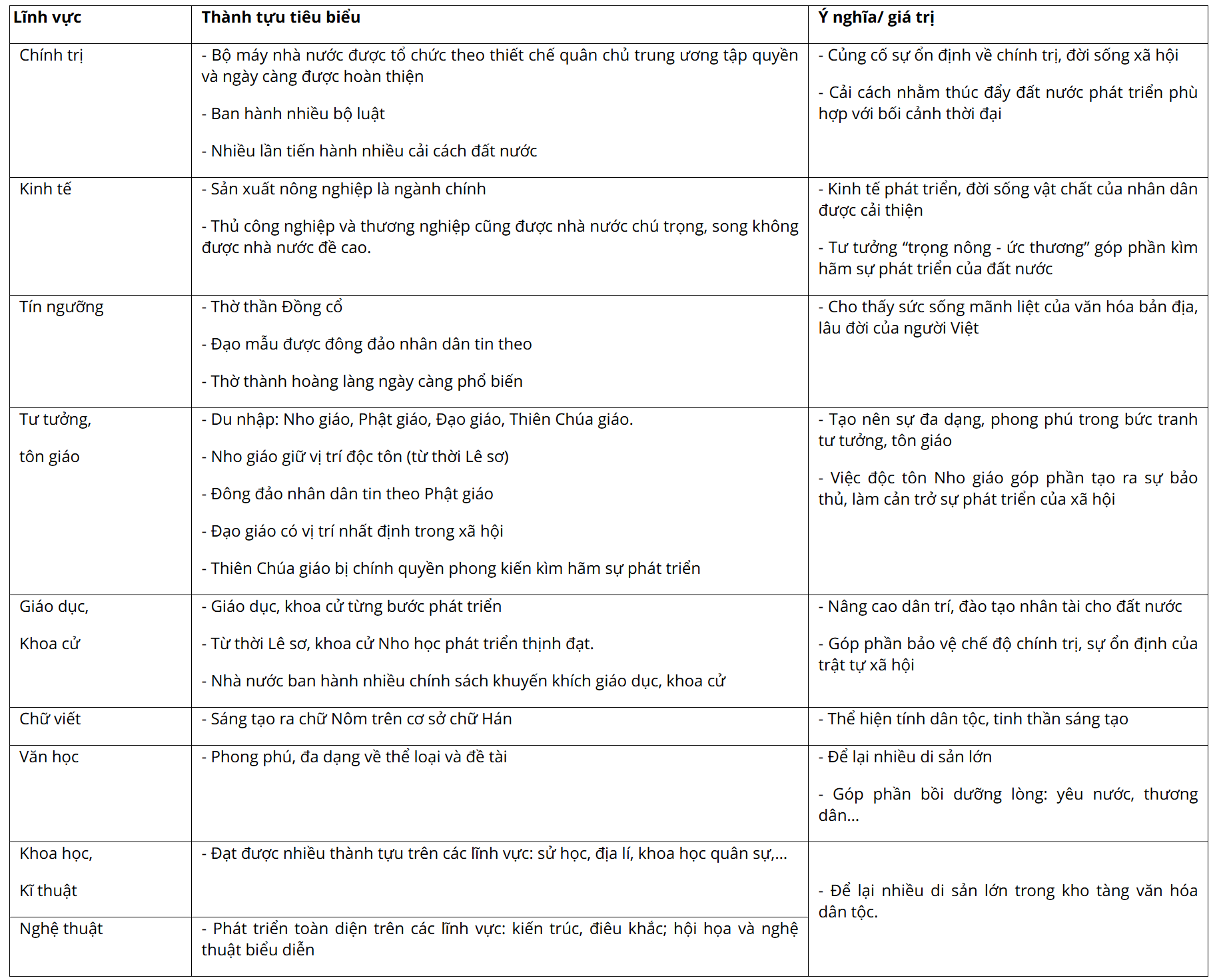- Năm 968, Đinh Bộ Lĩnh thống nhất đất nước, lên ngôi Hoàng đế, đặt tên nước là Đại Cồ Việt, đóng đô ở Hoa Lư (Ninh Bình). - Năm 1009, Lý Công Uẩn lên ngôi vua, nhà Lý thành lập. - Năm 1010, Lý Thái Tổ dời đô từ Hoa Lư về Thăng Long (Hà Nội). - Năm 1054, nhà Lý đổi tên nước là Đại Việt. - Năm 1226, nhà Trần thành lập. - Năm 1428, Lê Lợi lên ngôi vua, nhà Hậu Lê thành lập. - Năm 1802, Nguyễn Ánh lên ngôi vua, nhà Nguyễn thành lập. - Năm 1945, nước Việt Nam Dân chủ Cộng hòa thành lập.