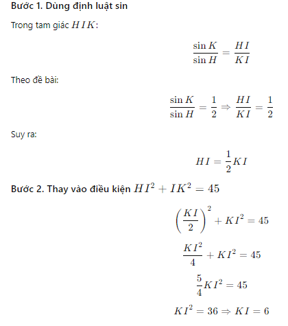 Thay \( IK = 2 \cdot HI \) vào phương trình trên, ta được: