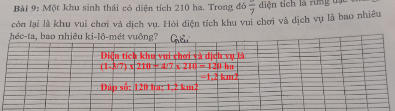 Vậy diện tích khu vui chơi và dịch vụ là 120 ha, tức là 1,2 km².