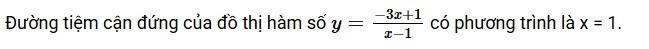Do đó, đường tiệm cận đứng của đồ thị hàm số \( y = \frac{3x+1}{x-1} \) là \( x = 1 \).