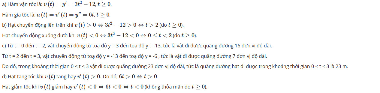 - Hạt tăng tốc khi \(t > 2\) và giảm tốc khi \(0 < t < 2\).