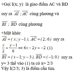 - Giải hệ phương trình gồm phương trình của AC và BD để tìm tọa độ giao điểm.