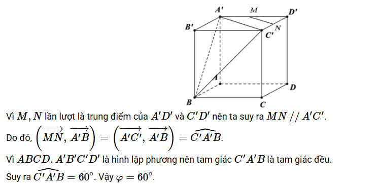 5. Tính góc giữa hai vectơ \(\overrightarrow{MN}\) và \(\overrightarrow{AB}\):