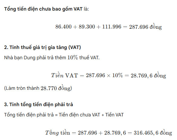 Tổng số tiền điện nhà bạn Dung phải trả là:
