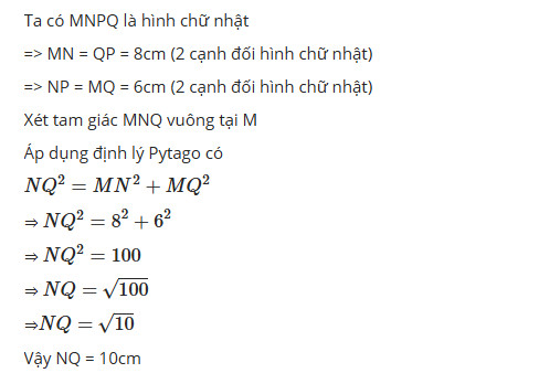 Do \(MNPQ\) là hình chữ nhật, điểm \(P\) sẽ có tọa độ là giao điểm của đường thẳng song song với \(MN\) đi qua \(Q\) và đường thẳng song song với \(MQ\) đi qua \(N\). Do đó, tọa độ của \(P\) sẽ là \(P(8, 10)\).