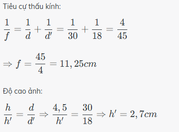 - OA' = d' = 15 cm (ảnh cách thấu kính)