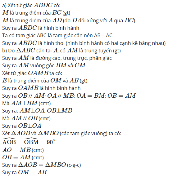 Bài 11: Cho tam giác ABC cân tại A, gọi M là trung điểm của BC. Lấy điểm D đối xứng với