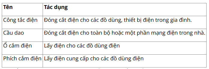 Thiết bị lấy điện trong gia đình thường bao gồm các thiết bị sau: