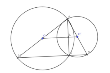 - Vì A và B là hai điểm cắt nhau của hai đường tròn, nên A, B, M, N cùng nằm trên một đường thẳng.