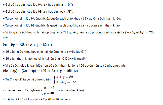 ĐỀ BÀI: Nhân dịp phát động góp sách vào thư viện nhà trường, mỗi học sinh khối 8 góp 3 quyển sách tham khảo và 5 quyển sách giáo khoa, mỗi học sinh khối 9 góp 4 quyển sách tham khảo và 5 quyển sách giá...
