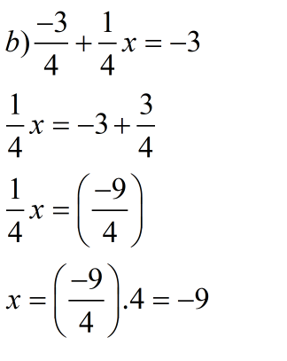 b) −34+14x=-3negative three-fourths plus one-fourth x equals negative 3