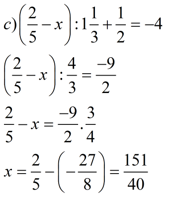 c) (25−x)∶113+12=-412open paren two-fifths minus x close paren colon 1 and one-third plus one-half equals negative 4 and one-half
