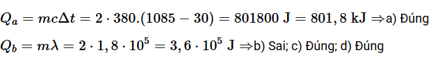 b) Nhiệt lượng nung chảy hoàn toàn: