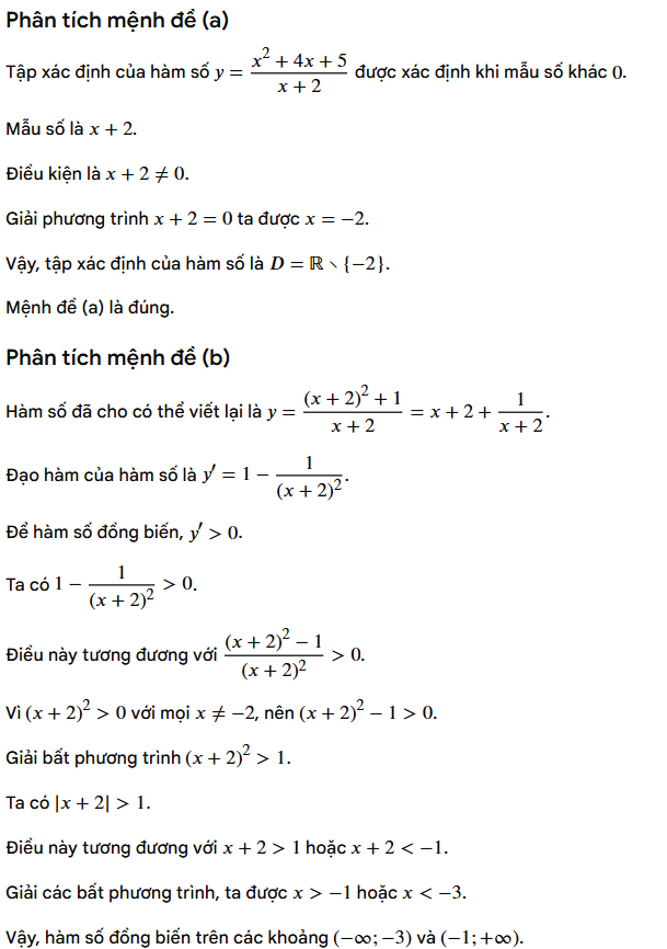 Ta có �′=(2�+4)(�+2)−(�2+4�+5)(�+2)2=2�2+8�+8−�2−4�−5(�+2)2=�2+4�+3(�+2)2=(�+1)(�+3)(�+2)2