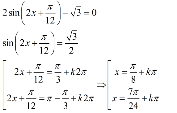 Giải phương trình lượng giác sau : $a)~2\sin(2x+\frac\pi{12})-\sqrt