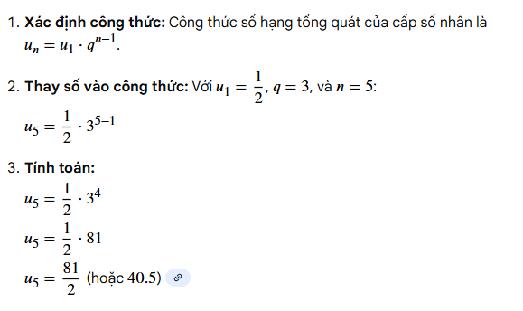 Vậy, số hạng thứ năm \( u_5 \) của cấp số nhân là \( \frac{81}{2} \).