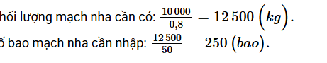 \text{Số bao mạch nha cần nhập} = \frac{\text{Khối lượng mạch nha cần thiết}}{\text{Khối lượng mỗi bao}}