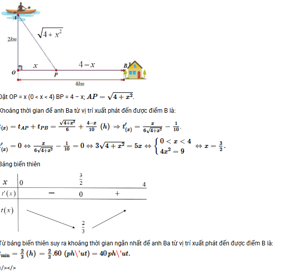 - Thời gian chèo thuyền từ \( A \) đến \( P \):