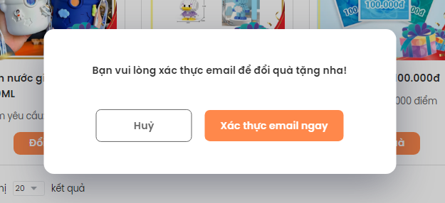 Bước 3.1: Xác thực Email. Để đổi quà, bạn cần xác thực email cá nhân | ![]() ![]() |